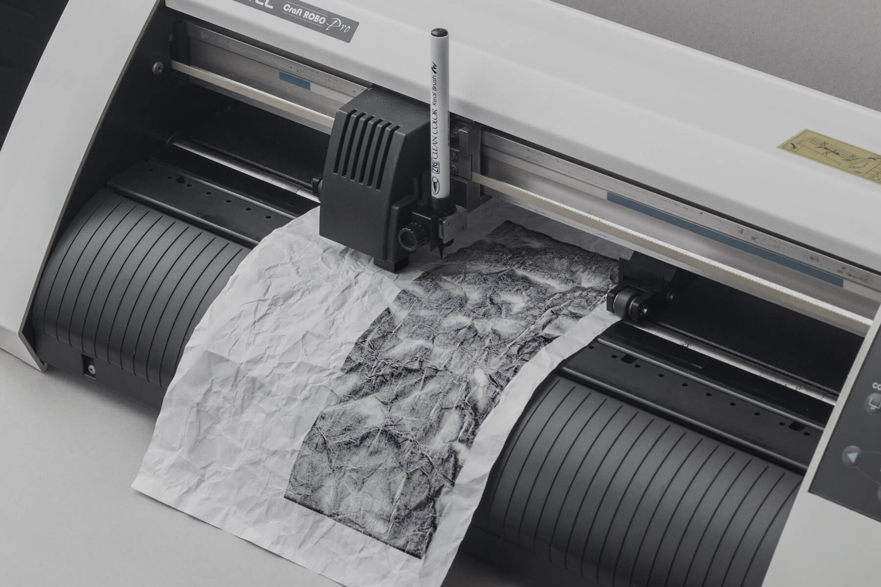 私は、プロッターというベクターデータを物理的な動きへと変換する機器を用いてデジタルデータを起点としたドローイング表現を行っています。 制御された線は、筆材や紙と接触することで、滲みや擦れといった予測不能な振る舞いを生み、データには存在しない「偶発的表現」が立ち現れます。 Plotter Drawing は、こうしたデジタルとリアルの境界で生じる現象を意図的に生成し、可視化するための手法です。 機械の精密な描線に入り込むわずかなズレや揺らぎはエラーではなく、物質が介在することで初めて現れる作品固有の表情となるのです。